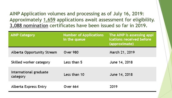 2019/07/16 기준 알바타 주정부 수속현황 입니다.