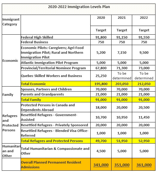 2022년도까지 이민자 케이스가 최대 약 390,000까지 확대될 전망 입니다.