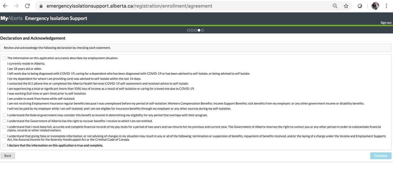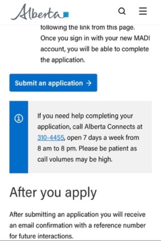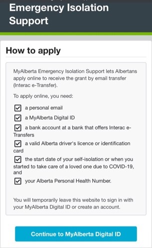 2, https://www.alberta.ca/emergency-isolation-support.aspx 들어가서 Submit an application 버튼을 누른다